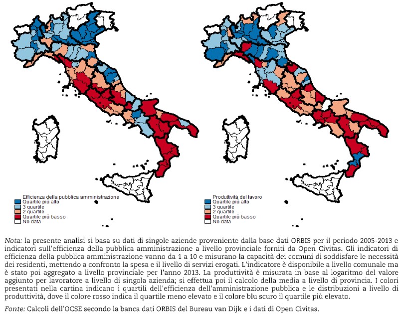 Una pubblica amministrazione inefficiente non solo rallenta la realizzazione di infrastrutture e servizi, ma ha anche ripercussioni dirette sulla produttività delle imprese private, soprattutto nel Sud, dove le condizioni di giustizia, sanità e infrastrutture sono più critiche.
