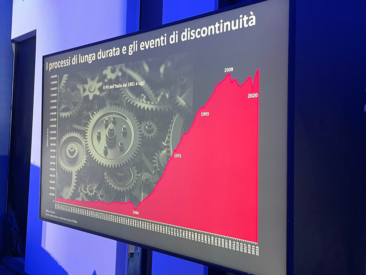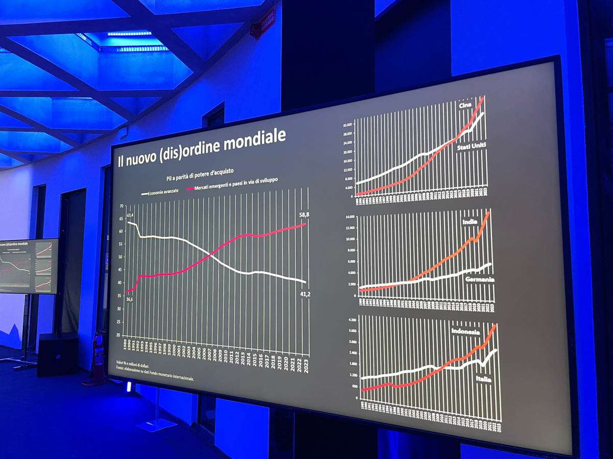 «Ma ci sono anche i rapporti, diciamo così, di forza dal punto di vista economico, tra le varie aree del mondo. Oggi il baricentro economico del mondo si sta spostando dall’Atlantico al Pacifico, e tutto questo si riflette anche molto concretamente sul nostro modello di sviluppo rispetto al passato, quando ogni generazione successiva aveva comunque delle prospettive di miglioramento».