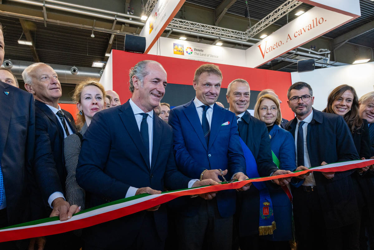 Al taglio del nastro nello stand della Regione del Veneto, il Presidente, assieme al Ministro Lollobrigida, ai rappresentanti della Giunta e del Consiglio regionale, ha rimarcato il ruolo centrale del polo fieristico veronese come punto di incontro tra domanda e offerta per valorizzare il settore equestre e promuovere le eccellenze venete.