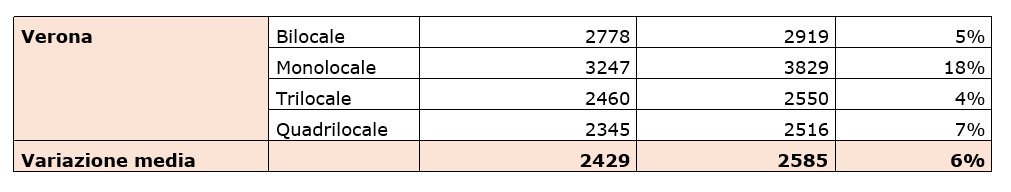 Immobiliare, a Verona incremento medio del 6% al metro quadro
