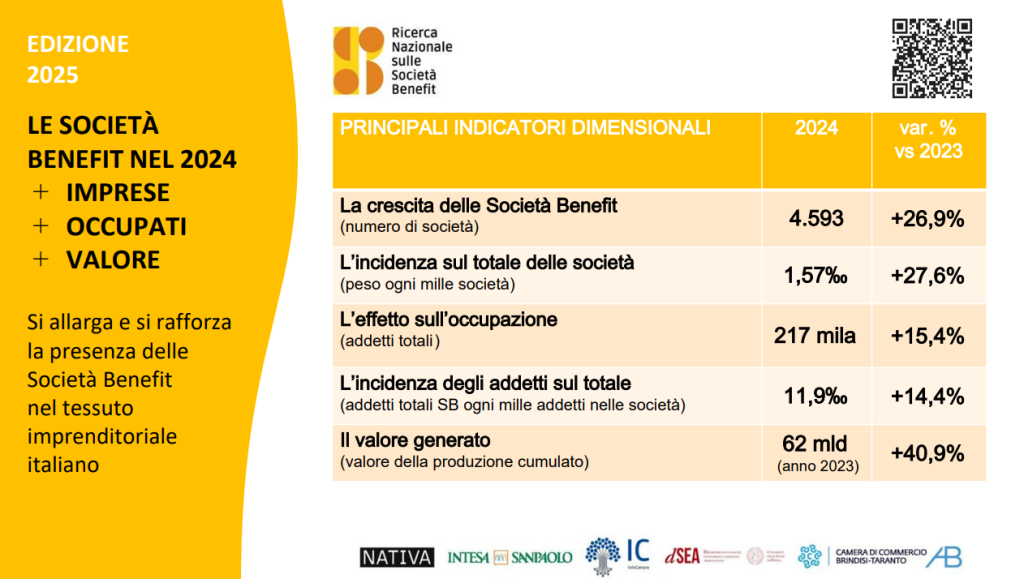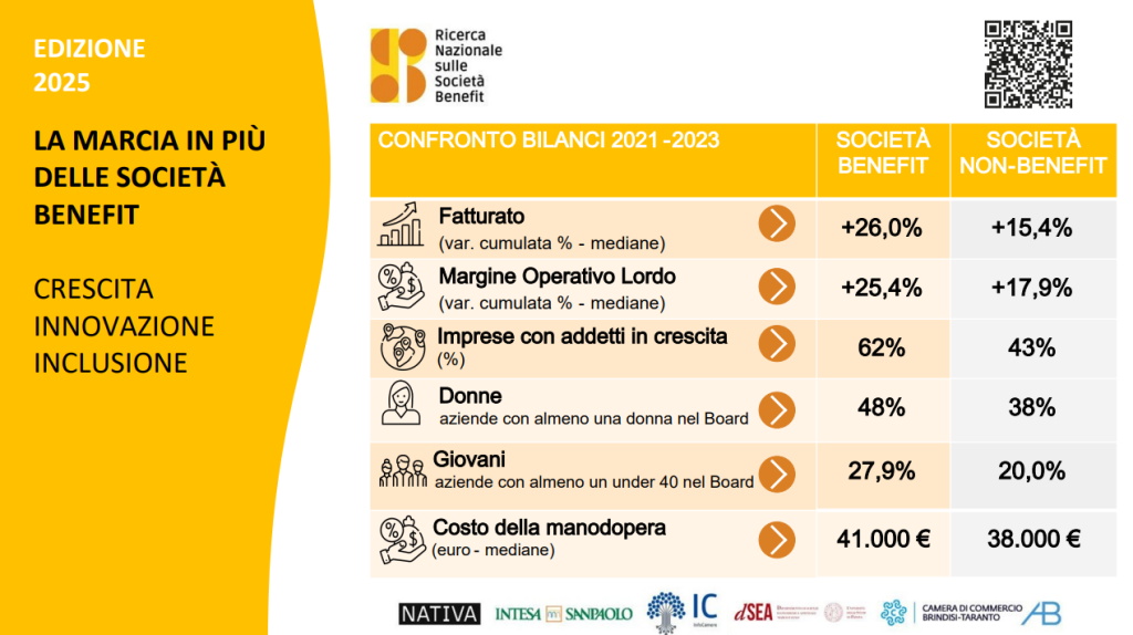 Nel 2024, il numero di Società Benefit in Italia ha raggiunto quota 4.593, registrando un incremento del 27% rispetto all’anno precedente. Oltre alla crescita numerica, si evidenzia un impatto economico significativo, con un valore della produzione che ha toccato i 62 miliardi di euro e una forza lavoro che conta più di 217.000 addetti. Il confronto con le imprese non-Benefit evidenzia una differenza sostanziale nelle performance: tra il 2021 e il 2023, le Società Benefit hanno visto il loro fatturato crescere del 26%, rispetto al 15,4% registrato dalle imprese tradizionali.