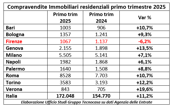 di RedazioneVerona guida la classifica nazionale delle grandi città per incremento delle compravendite immobiliari. Secondo l’Ufficio Studi del Gruppo Tecnocasa, sulla base dei dati dell’Agenzia delle Entrate, nei primi tre mesi del 2025 Verona ha registrato un aumento del 19,6% rispetto allo stesso periodo del 2024, il più alto tra le grandi città italiane, davanti a Genova (+13,5%) e Roma (+10,7%).