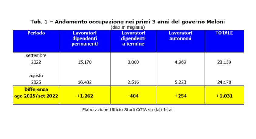 di Matteo ScolariL’Italia registra un milione di occupati in più nei tre anni del governo Meloni, ma cresce in modo preoccupante il ricorso alla cassa integrazione. È quanto emerge dall’ultimo report dell’Ufficio Studi della CGIA di Mestre, che fotografa un mercato del lavoro in chiaroscuro: più occupazione, ma retribuzioni ferme e segnali di difficoltà in diversi comparti produttivi.