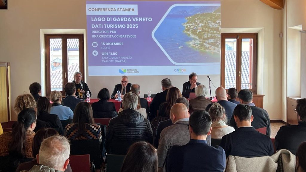 È quanto emerge dai dati dell’Osservatorio Turistico Verona Garda di Destination Verona & Garda Foundation (DVG), presentati lunedì 15 dicembre a Garda, a Palazzo Carlotti, nel corso di una conferenza stampa che ha riunito amministratori locali e rappresentanti delle categorie economiche. Presenti il presidente e il direttore di DVG Paolo Artelio e Luca Caputo, il presidente di Federalberghi Garda Veneto Ivan De Beni, il sindaco di Garda Davide Bendinelli e il presidente di Faita Federcamping Nordest Martin Kainz, insieme a numerosi sindaci e operatori del territorio.