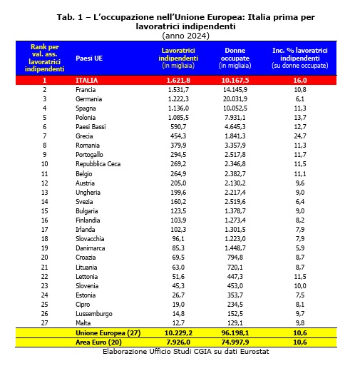 di Matteo ScolariIl 2025 segna un ulteriore passo in avanti per l’imprenditoria femminile in Italia, che continua a crescere nonostante le difficoltà. Secondo le elaborazioni dell’Ufficio Studi CGIA, il numero di donne imprenditrici è salito a 1.678.500 unità nei primi nove mesi del 2025, con un aumento del 2,7% rispetto allo stesso periodo del 2024. Questo dato colloca l’Italia al primo posto nell’Unione Europea per numero di lavoratrici indipendenti, con una quota che rappresenta il 16% delle donne occupate nel Paese.